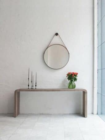 These chic looking circular mirrors are so unique. They can be hung on the wall for a dramatic effect, in fact they were made to look dramatic. You can buy them in several dimensions; large for hanging above a credenza or small for bunching a few together.