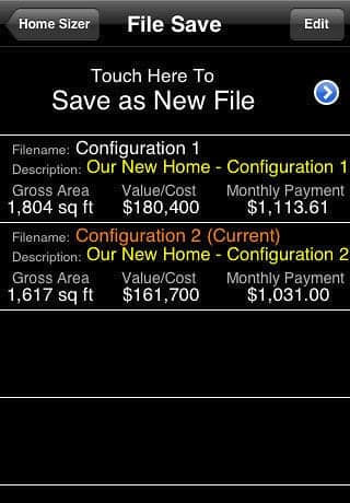 This app gives an estimate of the size and function of a home and lets you enter the dimensions and name of each room while it calculates the area of the rooms and the cumulative usable square footage.