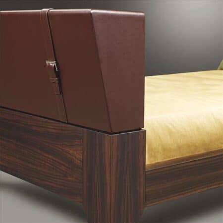In designing this bed, Promemoria furniture sought to create a piece that would elicit a sense of homeliness, functionality, and sophistication all at once. With its bronze padded legs, an option for linen or wooden stave bedsprings, a natural latex mattress, and an orthopedic spring box, Baku creates an unrivalled sleep sanctuary. The minute details, ranging from the skillful mix of wood and leather to the thoughtful use of nickel buckles, are evidence of the hours of workmanship expended on creating this piece of bedroom décor.