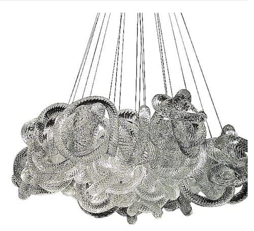 Seventeen hand-blown glass knots clustered into a round configuration.