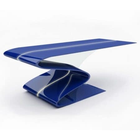 The Cobra Table by Pierre Cardin Studio is crafted into its sinuous shape with high-gloss lacquered wood and Plexiglas. To highlight — literally — the sweeping S-curves of the design, a strip of LED lights illuminates the form of the counterbalanced table, which only uses one leg for support. The result is a smooth, uninterrupted line with a hint of sensual fluidity like a liquid form being poured from a glass.