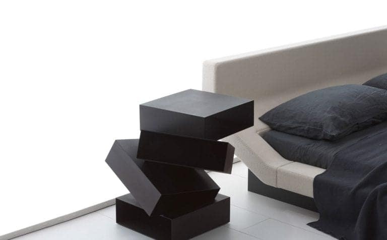 Symbolizing the exuberant design concept, from the team at Front, the gorgeous ensemble measuring w. 67.5 x d. 62.5 x h. 56 cm, acts as a regular bedside furniture, apart from sufficing as a magazine rack, a functional storage console, a simple stand and a stand alone sculpture. Available in white and black paint finishes, Balancing Boxes table by Porro is, crafted out of folded metal sheets or alternatively available in a wooden composition with eucalyptus, santos rosewood, lauro preto, red gum and tineo finishes.