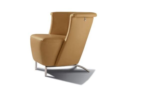 Designed with inspiration from shapes, Infinity is a stunning piece. It is made by furniture house Koinor and has a round back and a large seat. The back offers absolute comfort as the seat envelopes you luxuriously. Slim measurements make the chair warm, inviting, and attractive. It works well with different sofa collections because of its varied upholstery colors and metal pipe frame.