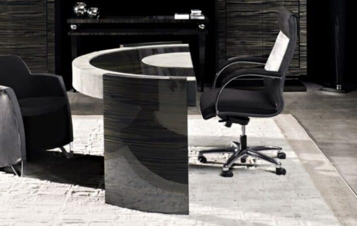 With two side legs supporting the thick slab tabletop, the Kiri desk has a monolithic presence in either a high-contrast black and white or rich wood tones. The half-circle arc offers a softer, more contemporary shape than traditional office furniture, so you’ll have a unique and cutting-edge style from which to run your day. What important decisions will you make from behind the Kiri ?