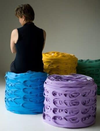 Latex is the last thing that crops up in your mind when someone mentions poufs. However Italian designer Ricrea begs to differ and has quite cleverly used latex for creating the Latex Roll Pouf. Don’t be fooled by the whimsical and quirky form factor of the pouf since it also emphasizes on conscientious design by following the principle of “upcycling”. All the poufs have been from discarded latex from the shoe industry, more specifically from the left off materials from the production of insoles. Thus there is no question about the softness of the material and the poufs end up being ergonomically correct and extremely comfortable.