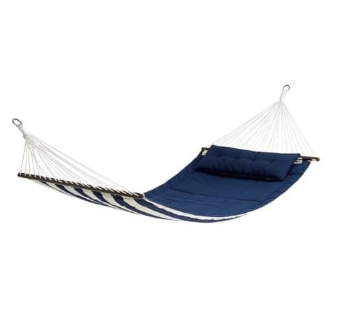 Your patio furniture can enhance your relaxation and make you want to linger outdoors. If you want to add a new piece to your outdoor décor, consider Hammock Sling & Headrest by Pottery Barn. Its relaxing design will help you to enter a tranquil state and forget about your cares and worries.