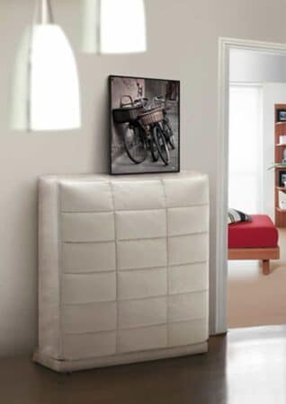 Everynight Retractable Bed by Pol74 has a bedspring in three sizes: 140×200, 90×200 and 80×200. Mattress options include a pocket spring mattress, a removable foam mattress, or a spring mattress that may or may not be removed.