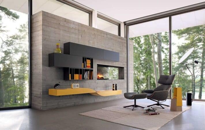 Dressed in chartreuse this idea has a plethora of different sizes and shapes to go along with its overall style. From top to bottom this entire structure can take the place of your media table and cabinets. Instead of trying to mix and match functional pieces, this design benefits those who want both function and transformative style.