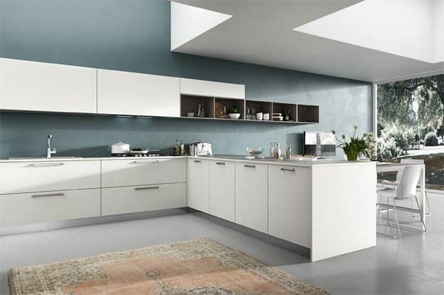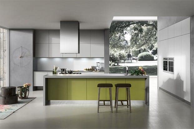 The Tau Kitchen by Armony Cucine, start with a configuration that matches your space. Do you prefer an open plan with wall cabinets only or a single bar in an L-shape cuisine? If you want to create a gathering space, use the large kitchen island in the collection with generous legroom on one side for bar seating and socializing.
