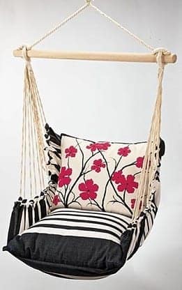 The traditionally styled swing is weather-resistant and perfect for the porch or sunroom, hanging from a garden arbor beam or swing frame. The cushions are polyfill with zip-off Sundure poly covers and bottom cushion measures 22″ square, where as the back cushion 22” x 17″. The Red Flowers Indoor/Outdoor Swing Chair can be purchased from Acacia Lifestyle for $149.95.