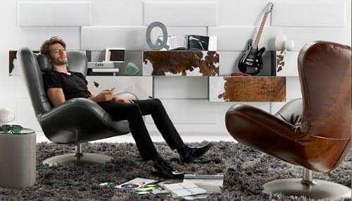 Natuzzi Leather of Italy keeps up with modern technology as well as the (take music where ever you go) craze by including well placed speakers and Ipod jack in their new “Sound Chair”. I had the pleasure of acting like I was working while I auditioned the auditory capabilities of this cool addition to the Natuzzi collection which feel as good as it looks. The retro styling is reminiscent of some of the mid-century modern chair designs we have seen before but this time perforated areas on either side of the headrest hide speakers that make your stay a lot better. Contact a Natuzzi Leather furniture dealer near you for more info as leather grades will effect pricing.