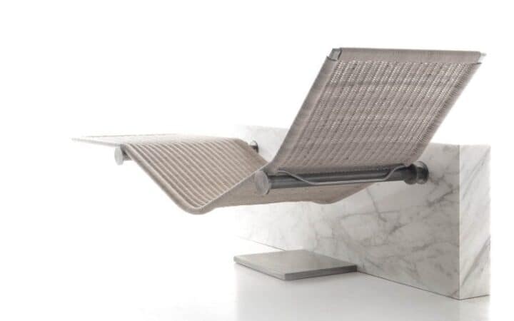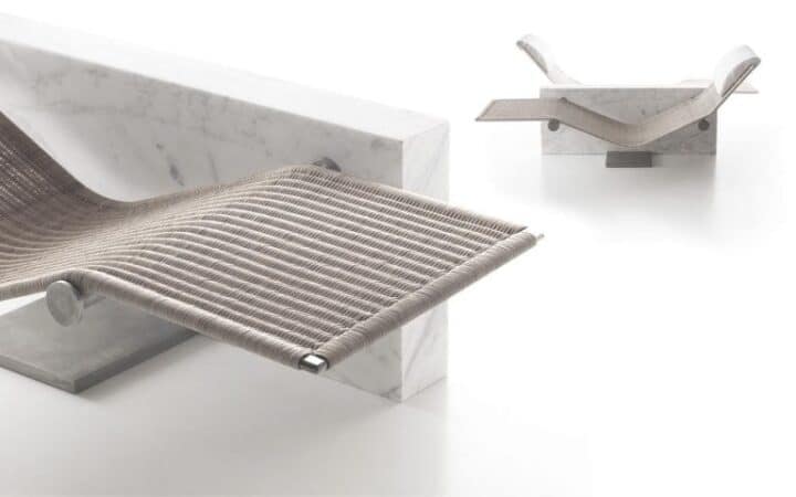 It is the masterpiece of Enzo Berti and comes in single and double versions. The chaise lounge can be used both indoors and outdoors. The outdoor version is made from PVC to withstand humid temperatures. It has a hollow frame and is very easy to adjust.